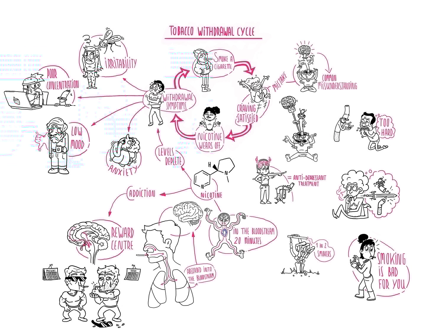 This Infographic describes how smoking can harm your mental health through the tobacco withdrawal cycle, and how quitting smoking can offer mental health benefits.