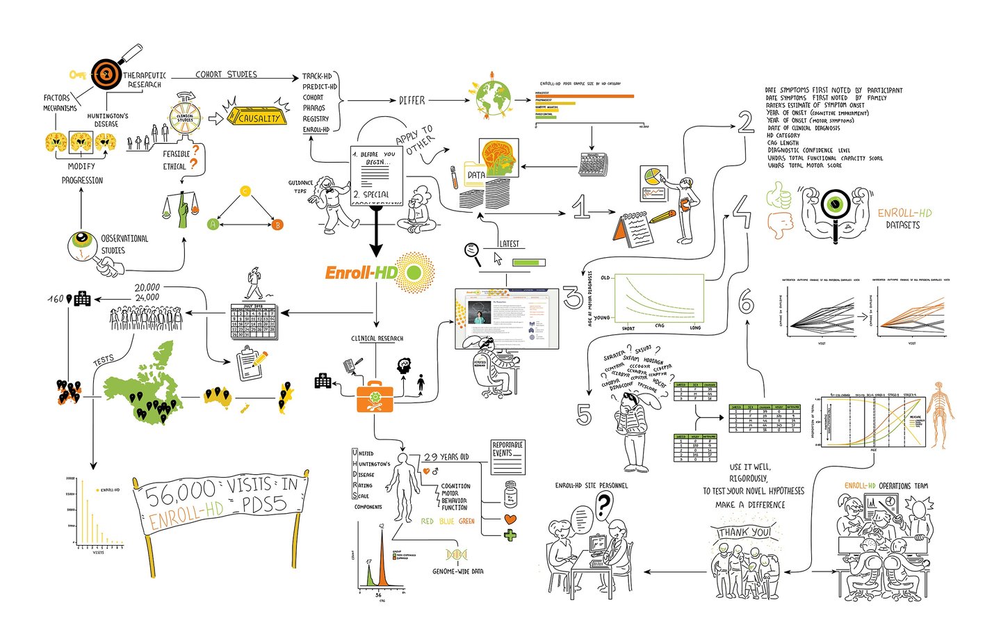Enroll-HD is a study that aims to accelerate the development of therapies for Huntington's disease by collecting more uniform clinical data and biological samples to better understand the natural history of Huntington's.