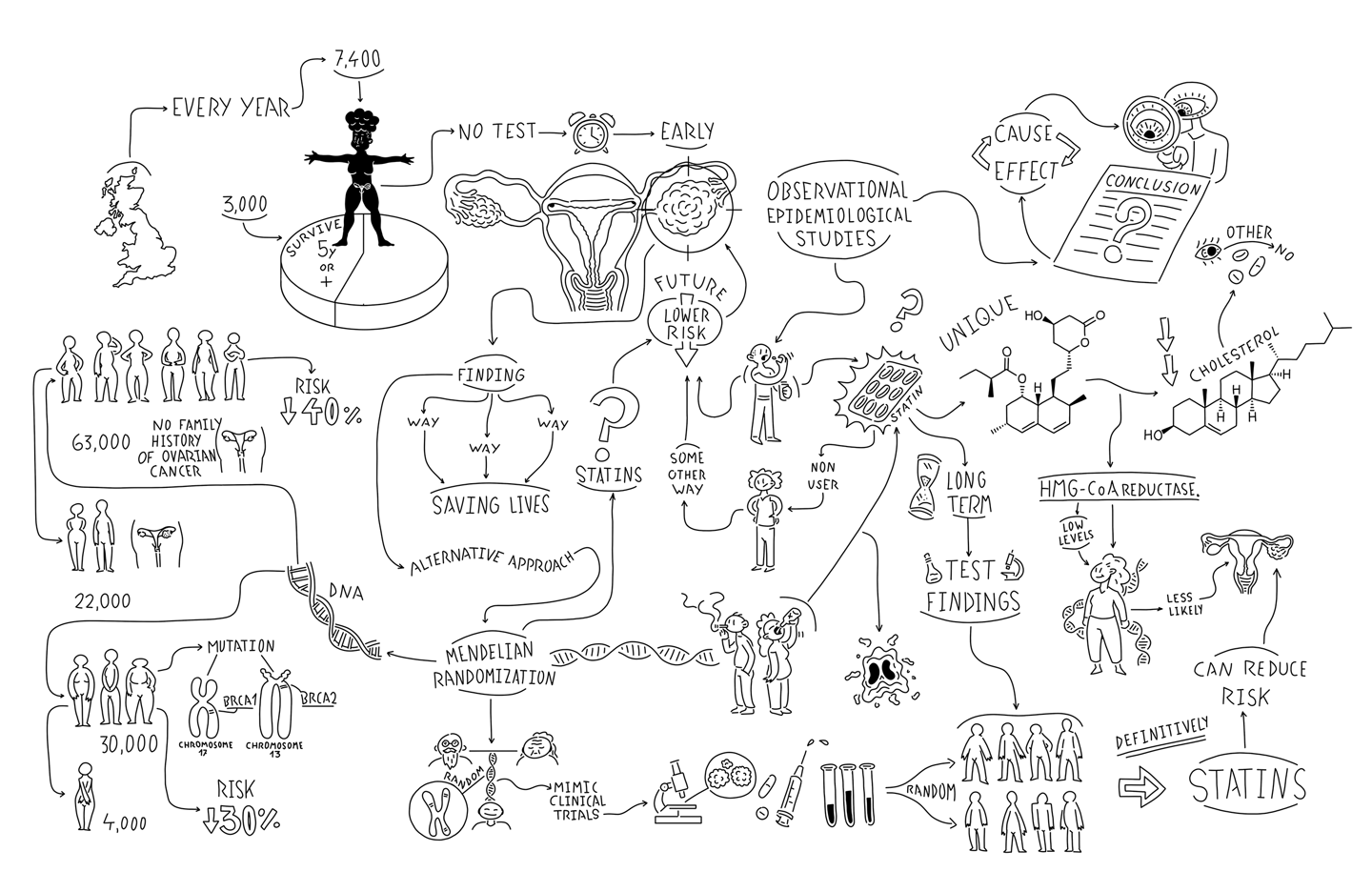 This Infographic summarises research findings suggesting that long-term use of statin medications could lower ovarian cancer risk. The research was carried out by a team of scientists in the Cancer Research UK Integrative Cancer Epidemiology Programme and led by Dr James Yarmolinsky.